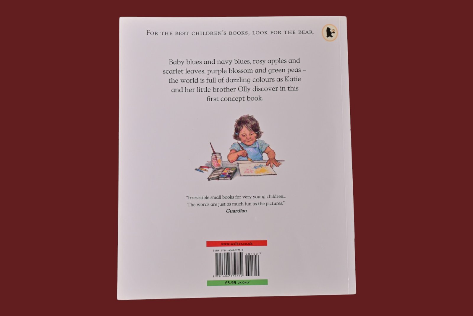 Baby blues and navy blues, rosy apples and scarlet leaves, purple blossom and green peas the world is full of dazzling colours as Katie and her little brother Olly discover in this first concept book.