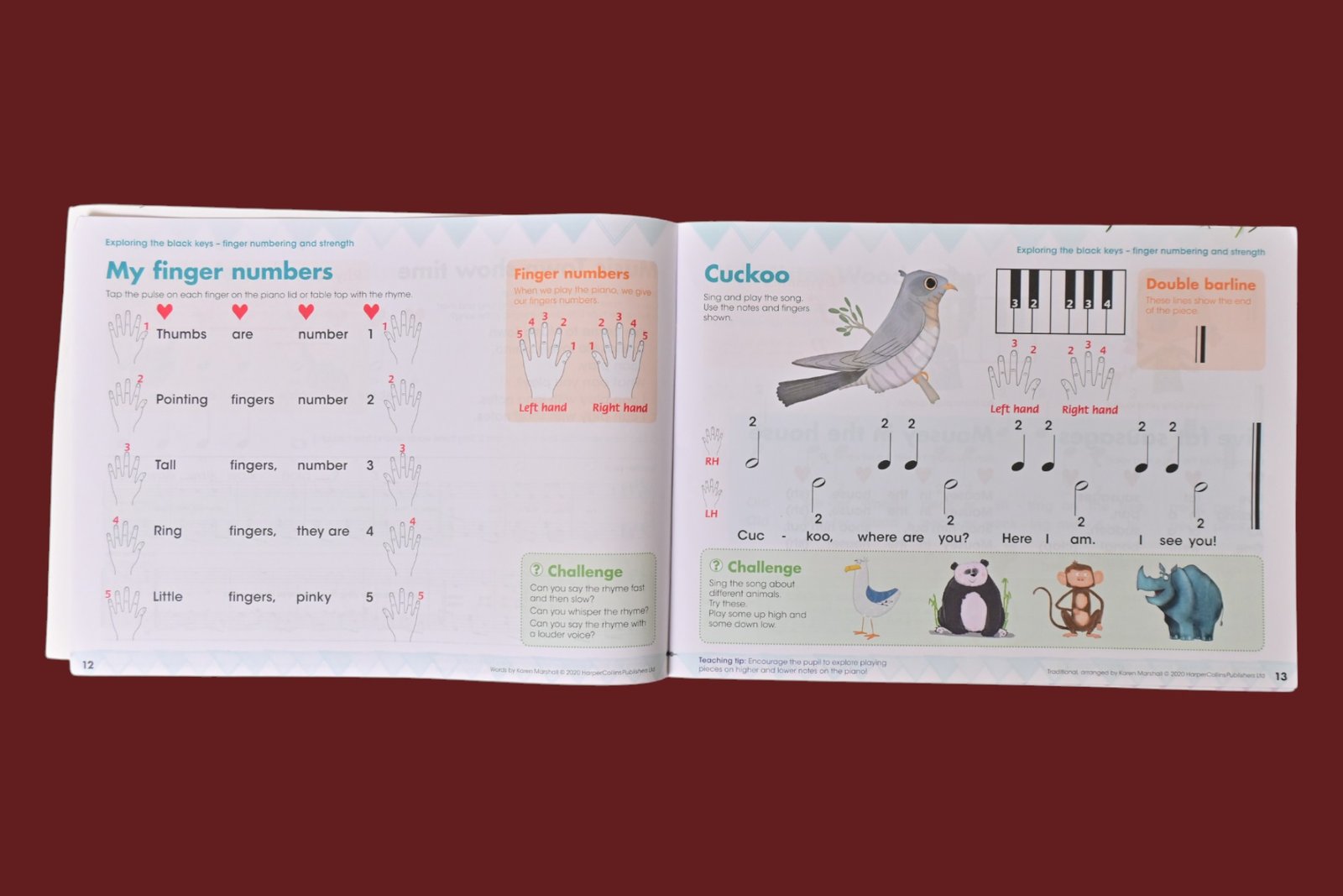 My First Piano Book introduces young children to the piano and music-making through fun activities, rhymes, songs and pieces. The author’s tried-and-tested progression covers note learning, theory, aural and composing through a creative and holistic approach. Many pieces have simple teacher duet parts to encourage ensemble playing from the start, and the book is illustrated throughout in the charming Get Set! style. This carefully designed tutor will inspire, entertain and, most importantly, nurture a love of music that can last a lifetime. Suitable for children aged 5+.