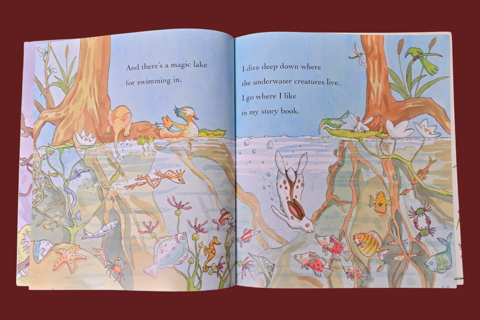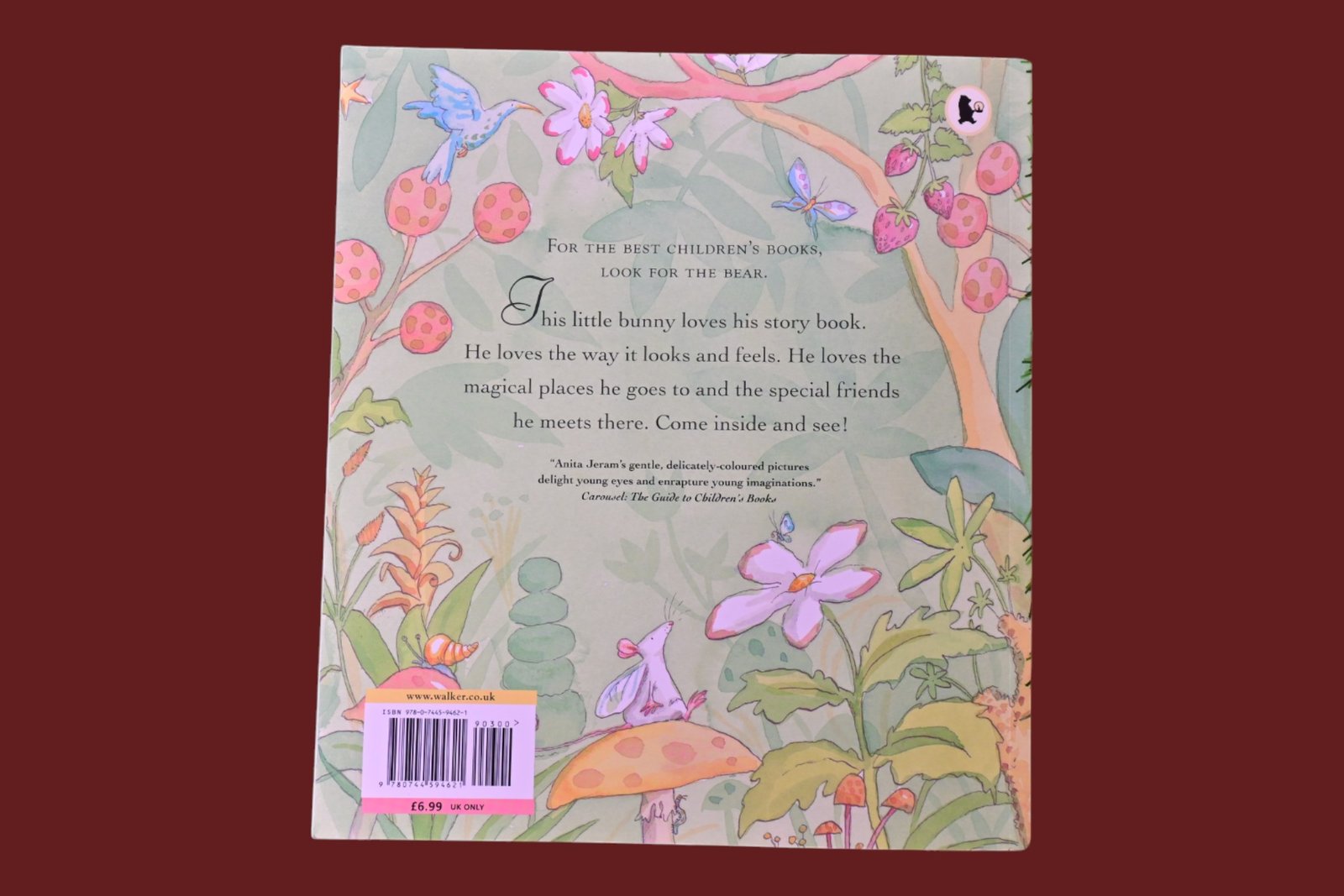This picture book is a celebration of the essence of reading; the sensation of holding a book and entering through its portal into another world that everyone who reads it can relate to and delight in. The reader is taken into a rabbit’s world of giants, fairies and magical lakes.