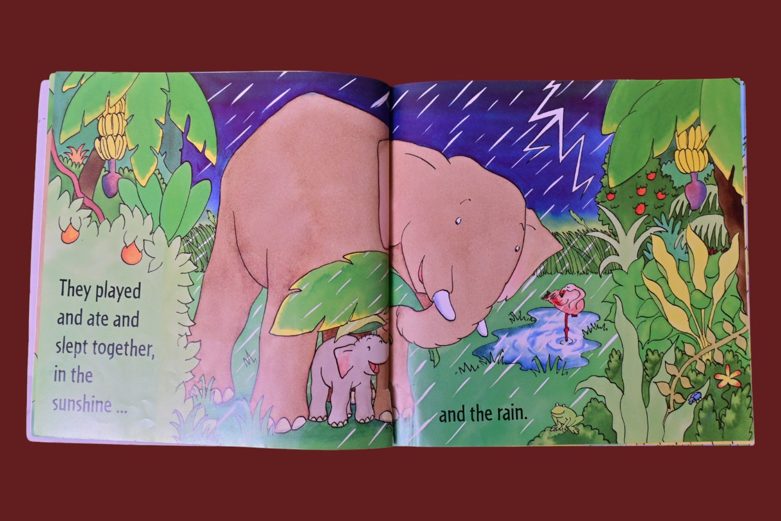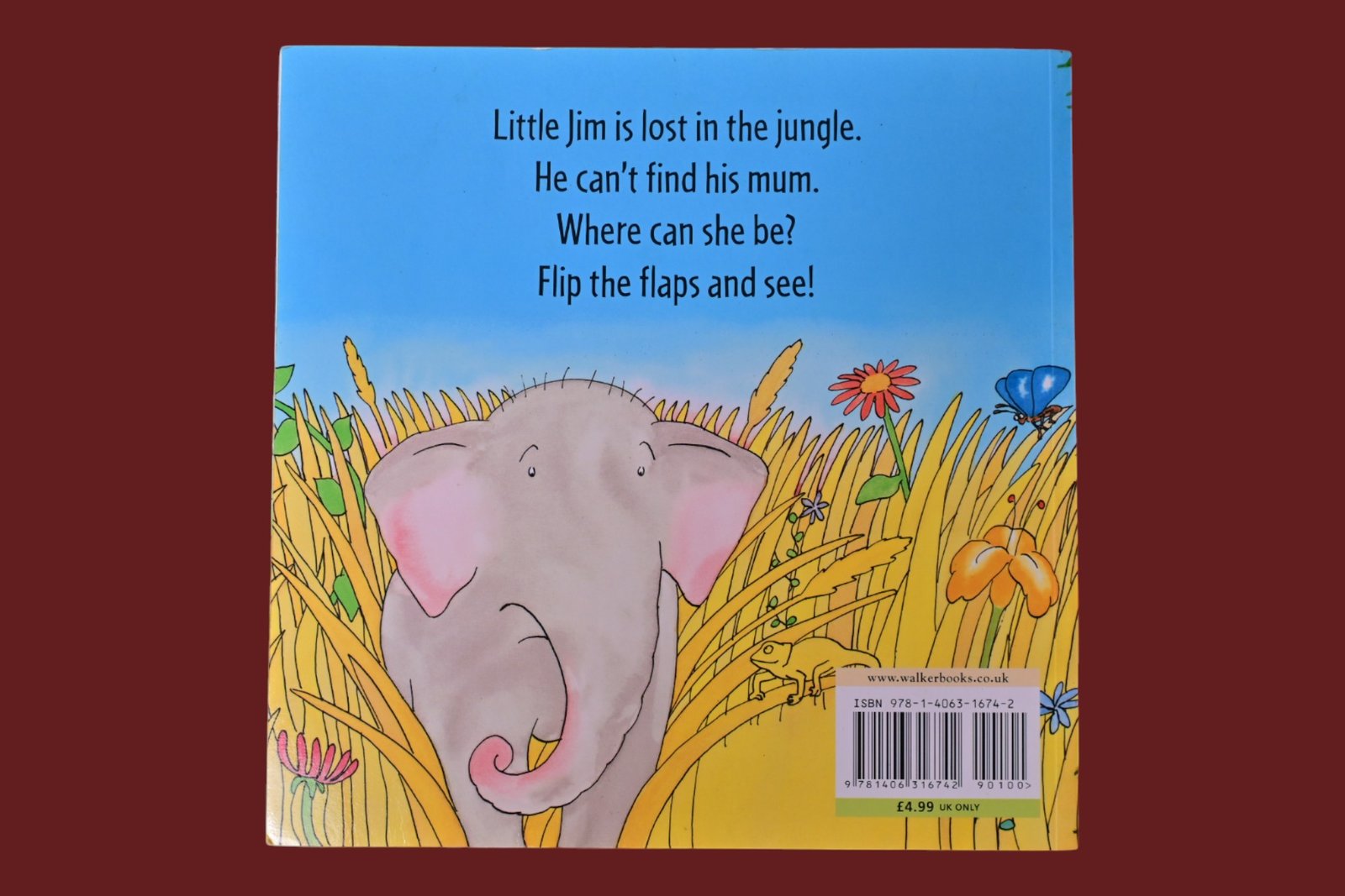 Little Jim, a baby elephant, lives in the jungle with his mum. One day, they play hide-and-seek, but Little Jim gets lost. He looks for his mum among the thick leaves, in the long grass, on the high mountains, in the deep river. Where can she be?