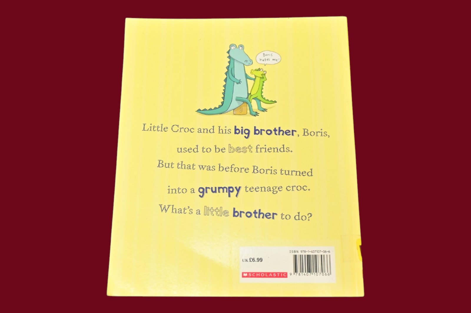 Little Croc loves his big brother Boris, but Boris has become grumpy, preferring eating, sleeping and hanging out with friends. A humorous and reassuring picture book about sibling relationships and growing up.