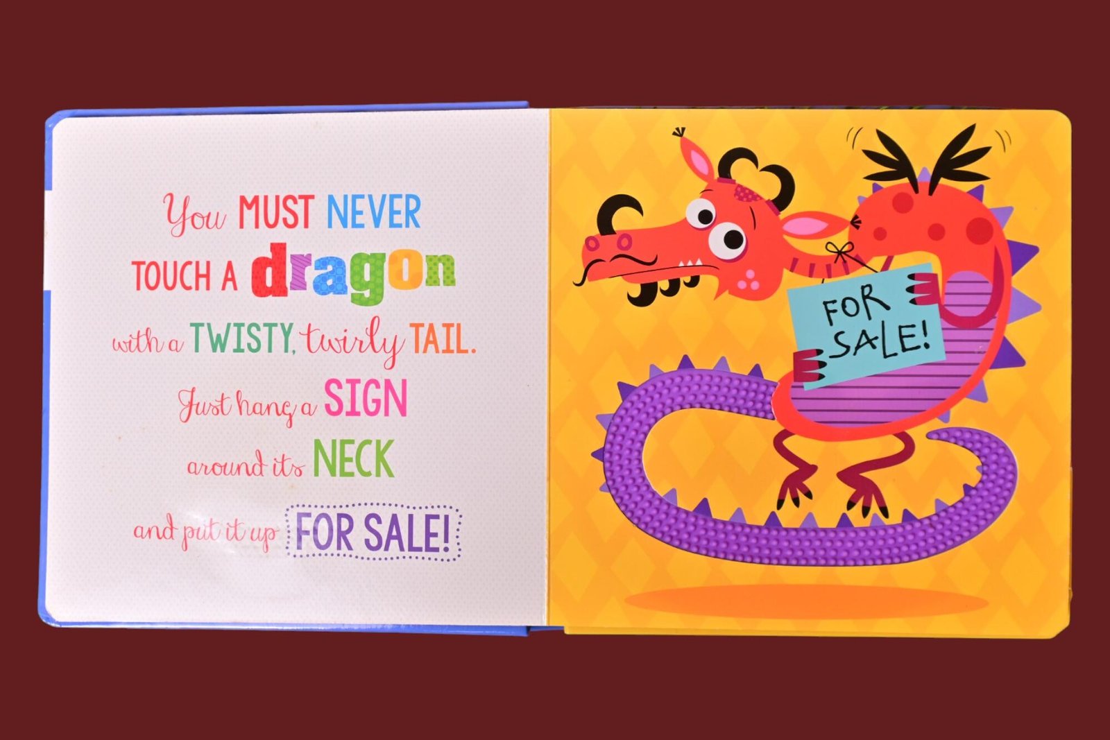 Meet the dragons in this funny rhyme, perfect for children and adults to enjoy together. Have fun touching the bumpy dragons… if you dare!