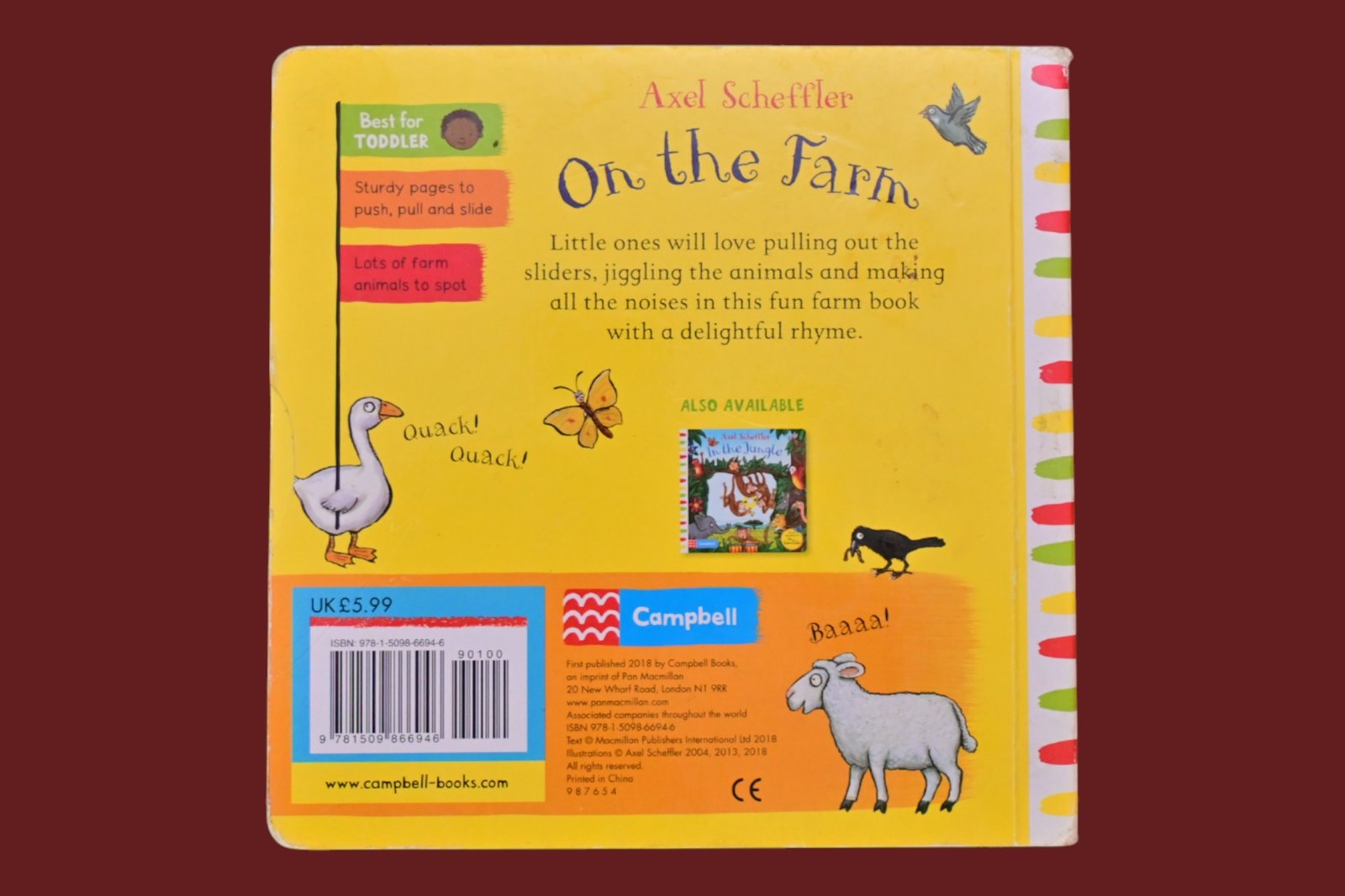 “Little ones will love pulling out the sliders, jiggling the animals and making all the noises in this fun farm book with a delightful rhyme”–Back cover.