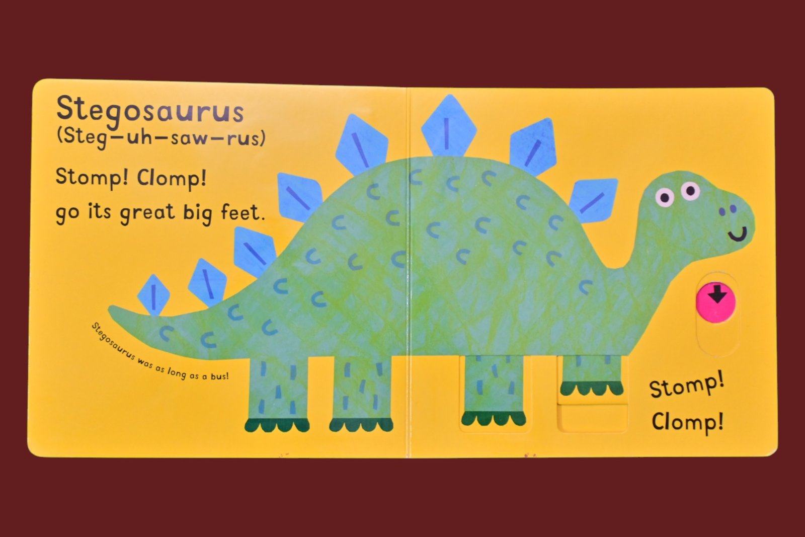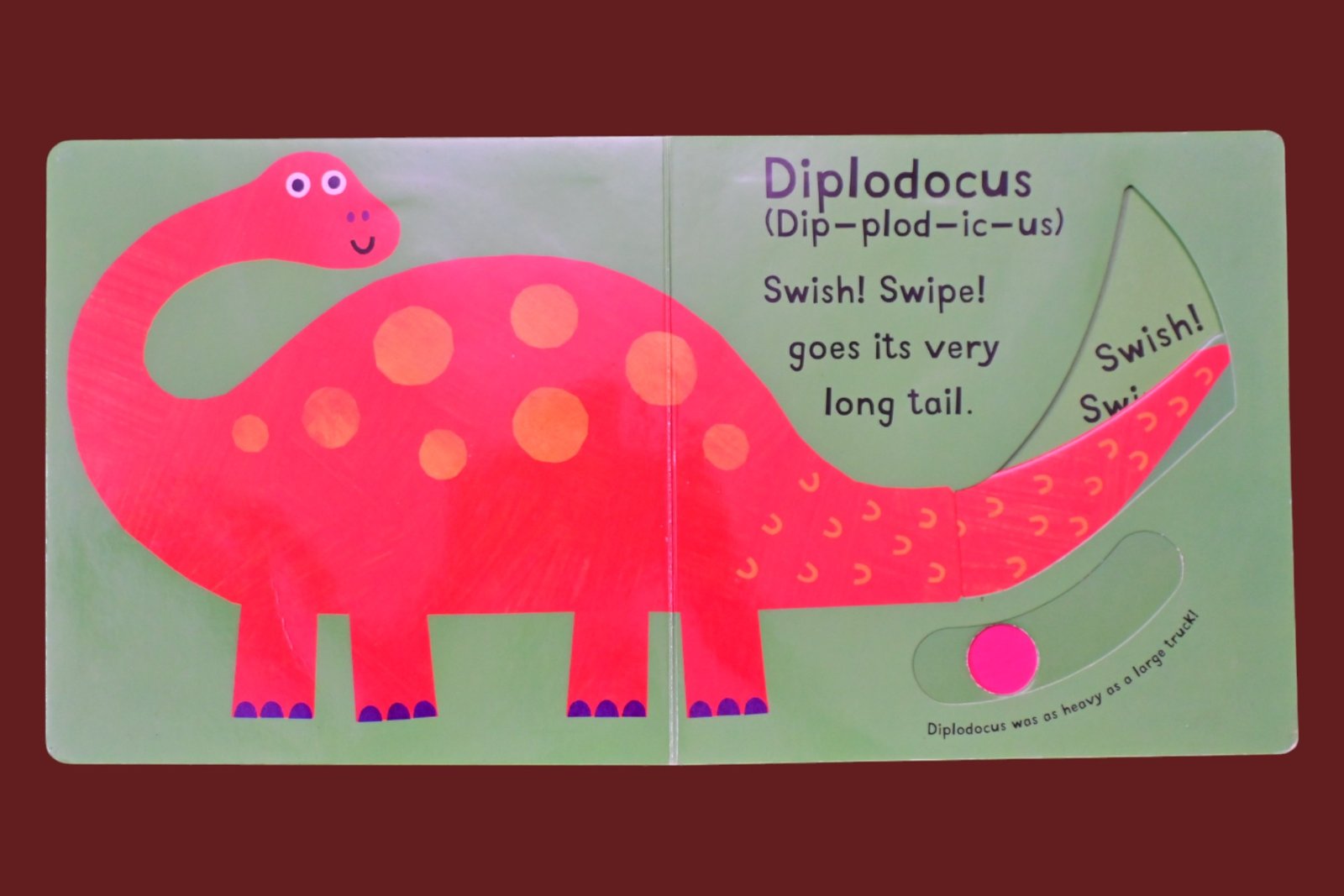 Discover a first introduction to dinosaurs, in this super sturdy, chunky board book with sliding tabs. Little ones will delight at the innovative tabs that make the dinosaurs move and dance on every spread, from the swoop of the pterodactyl’s bat-like wings to the swish of a diplodocus’s long tail. Combining simple dinosaur vocabulary with colorful illustrations, direct action words, and captivating novelty, this board book is sure to delight and excite as it withstands reading again and again.