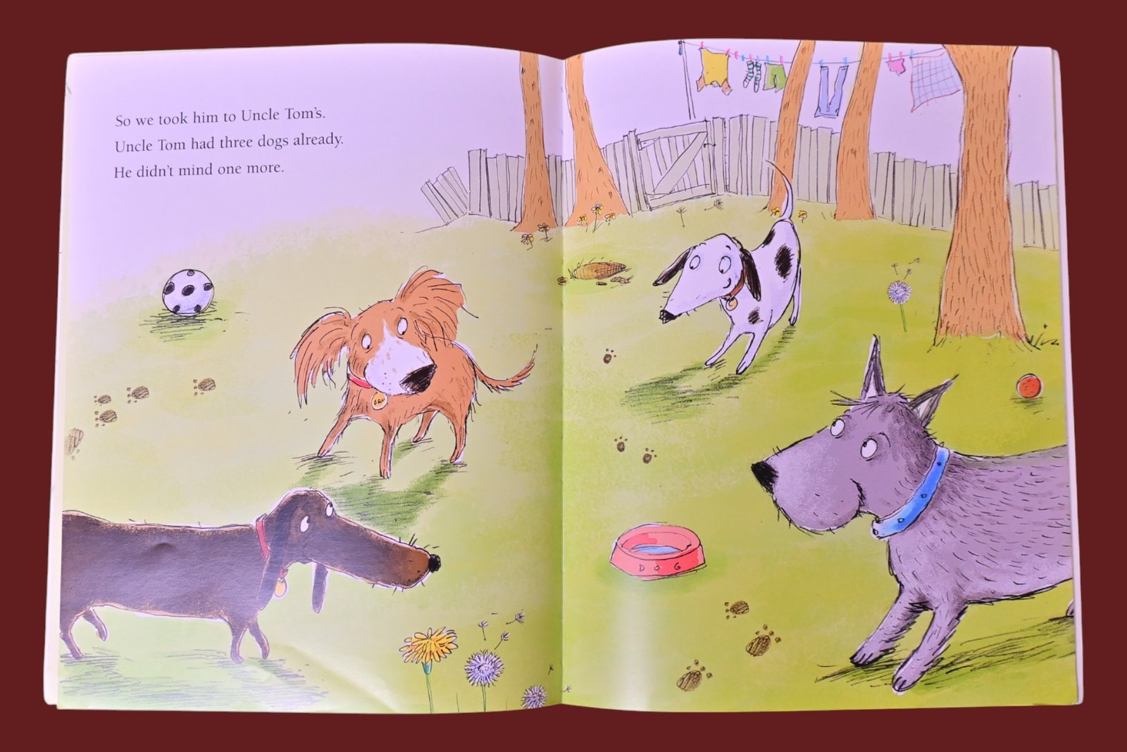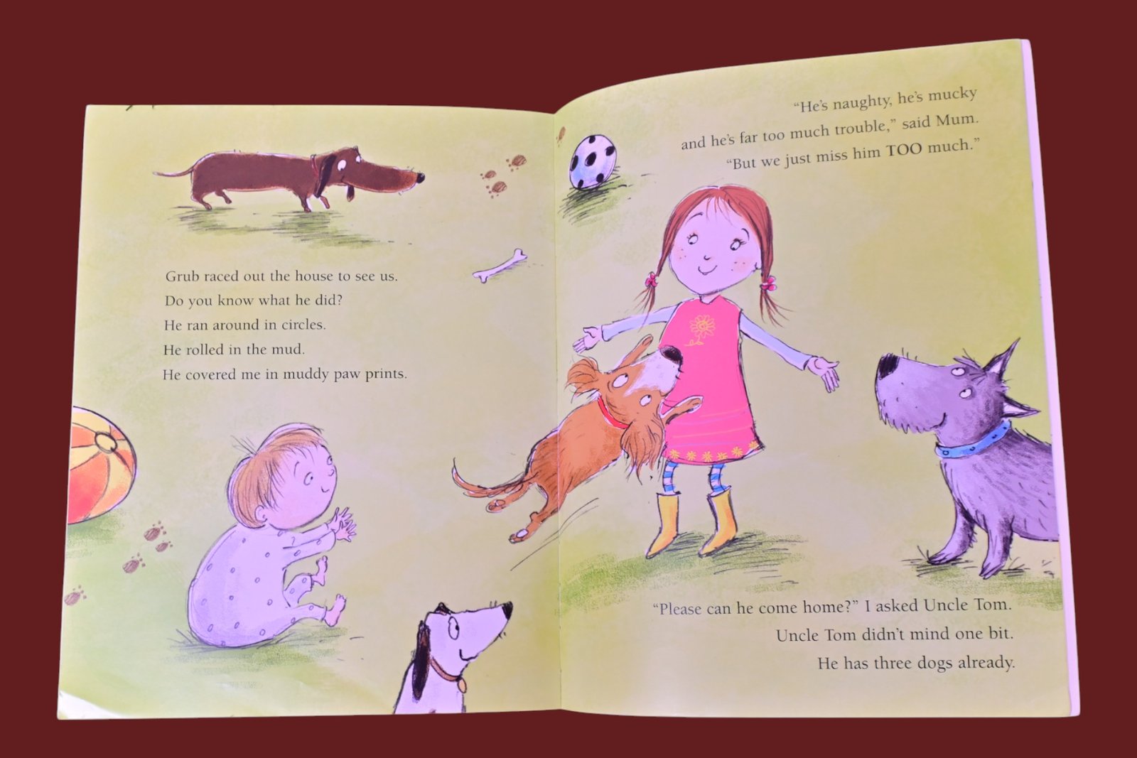 Ruby loves her very grubby, mucky dog named Grub, even though he is a bit of a trouble maker–he digs in the garden, rolls in the mud, runs away, and leaves muddy paw prints everywhere. Eventually Mom has had enough and sends Grub to live with Uncle Tom and his three dogs. But everyone misses him, and soon Grub returns home to make even more messes!