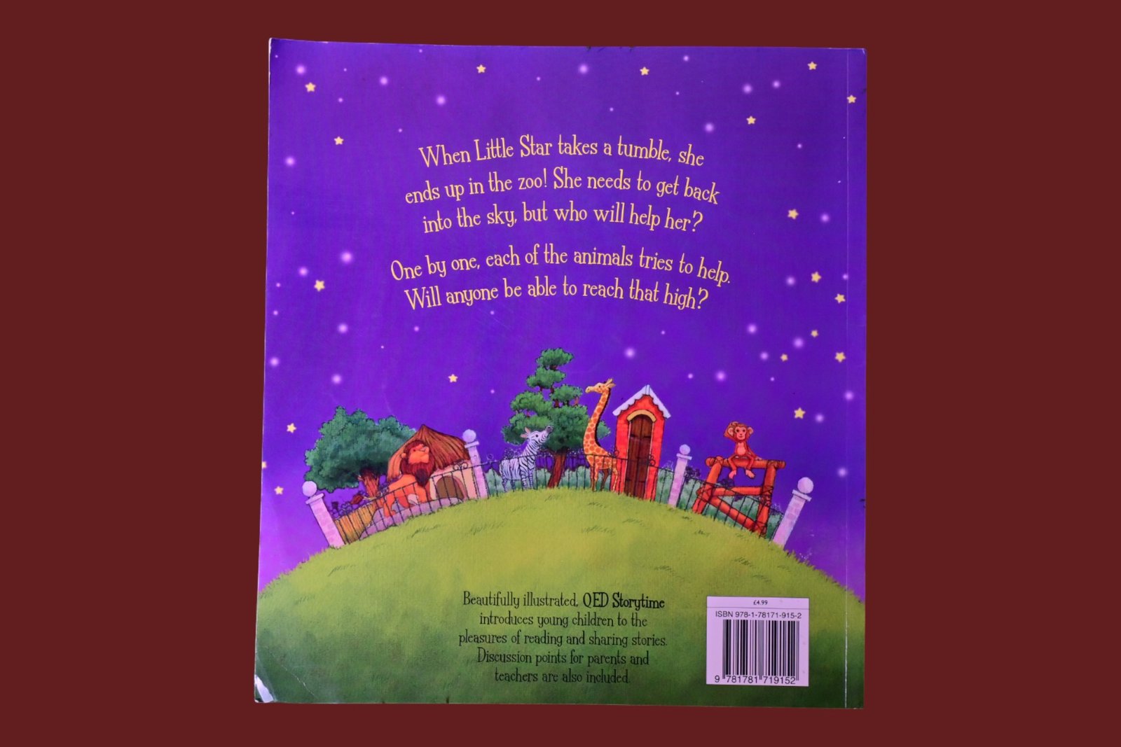 The animals are settling down for the night when a shooting star falls into the zoo. Little Star is desperate to get back home, but who will help her? One by one, each of the animals offers to help Little Star, but none of them are tall enough to reach the sky. Finally Ant comes forward. Together with all of her friends and family, Ant makes a tower tall enough to get Little Star home. Their work done, the animals finally go to sleep. High above them, Little Star twinkles like a diamond in the sky. This Storytime title is perfect for showing children the value of teamwork whilst also educating them on the different animals and their individual characteristics. Each title in the Storytime series contains beautiful artwork that children will love and a moral they’ll remember. They are the perfect stories to read with a loved one and even alone.
