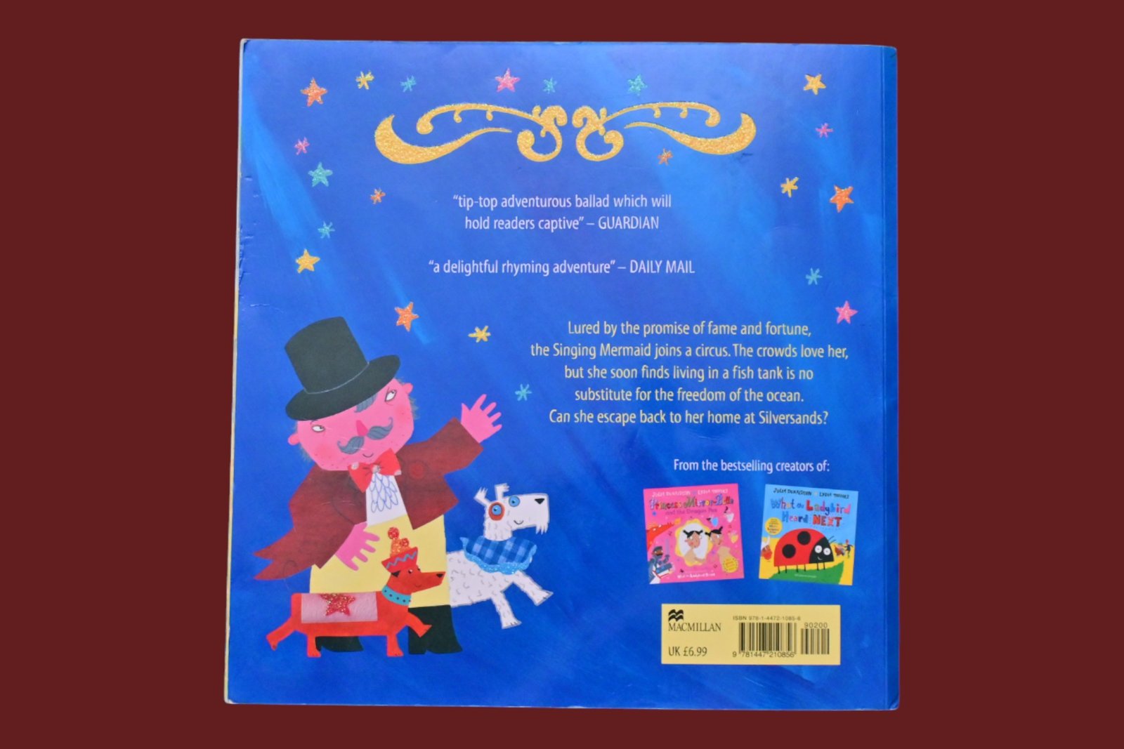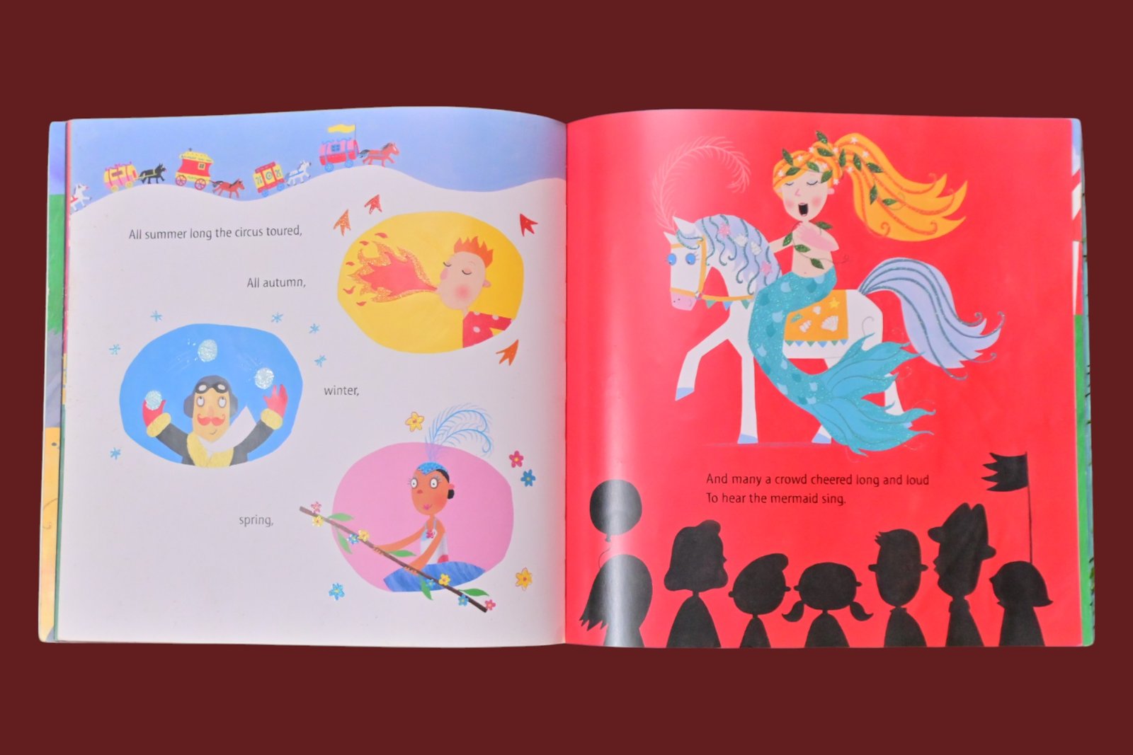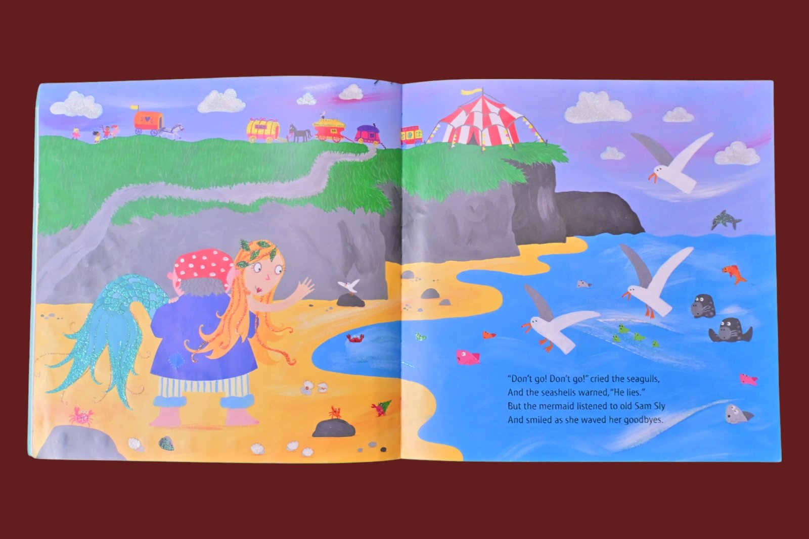 Join the Singing Mermaid in a circus adventure as she attempts to escape back to her seaside home in this lyrical story.