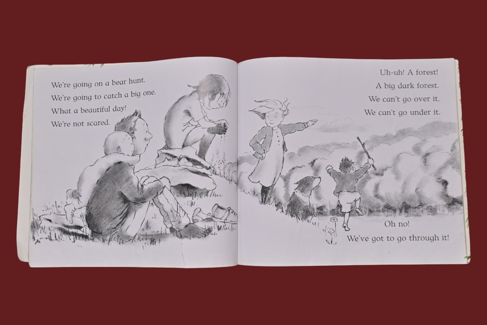 We’re going on a bear hunt. We’re going to catch a big one. What a beautiful day! We’re not scared.